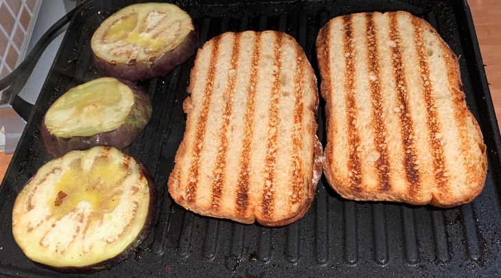 Ahora que se acercala hora de la cena algo fácil y rápido y una de las recetas más ricas si compartes tu vida con un vegetarian@ o vegan@ o si simplemente no te apetece comer carne, es un sándwich de berenjena…muy sano la verdad no sé si es, quizás habría que preguntárselo mi amiga Yolanda o Carlos Rios, pero vamos muy rico si que está.