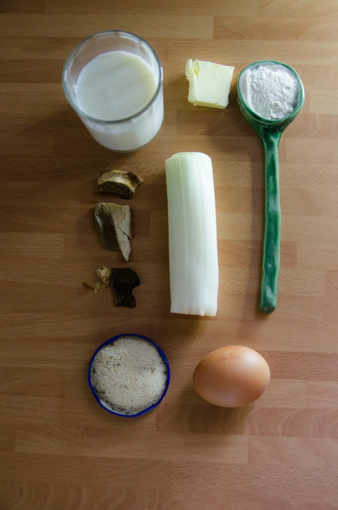- Sofreímos los boletus con un poco de puerro muy picado y lo añadimos. Mezclamos bien con la bechamel. Echamos sal, pimienta y nuez moscada al gusto.