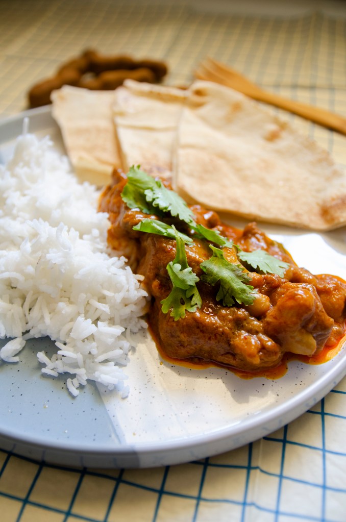 Recomiendo acompañarlo con arroz tipo basmati o jazmín cuando lo servimos ponemos cilantro fresco por encima.