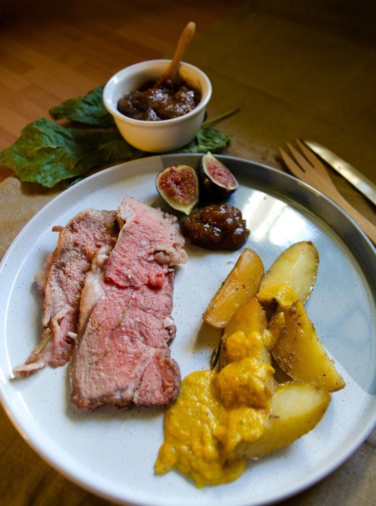 El otro día mi vecina Ángela me regalo higos de su huerta y como no sabía qué hacer con ellos prepare una confitura (que será la próxima receta que suba) para quesos va muy bien, pero, pensé que con un roast beef iría aún mejor, así que me acorde de la mejor carniceria de Madrid CARNIco y me fui a por un pedazo de lomo alto para preparar este plato y los resultados saltan a la vista, la carne de La Finca y la calidad precio es de 10, les recomiendo muchísimo todos sus cortes.