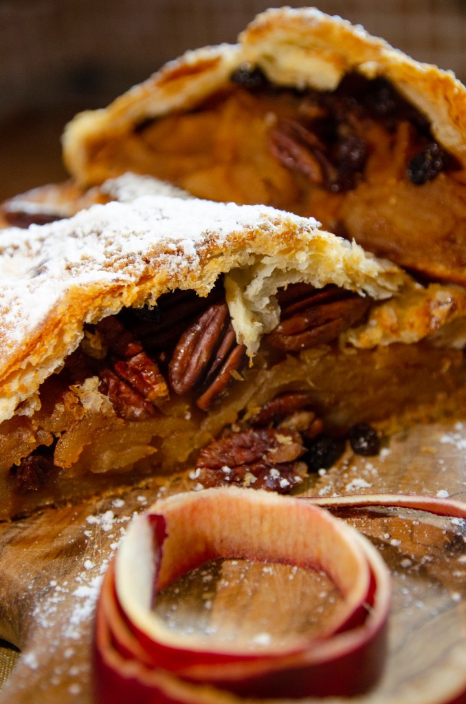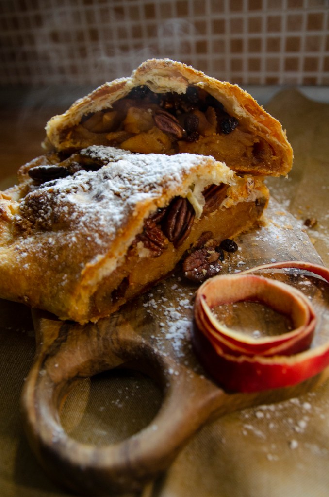 El Apfelstrudel o strudel de manzana es un postre típico tradicional de la cocina austriaca y de Alemania, cuyos orígenes podrían remontarse a antiguas recetas de las cocinas bizantina, armenia o turca. El strudel de manzana servía en la antigüedad como un alimento para la gente pobre. Las raíces de este pastel se sitúan en el árabe y armenio Baklava.