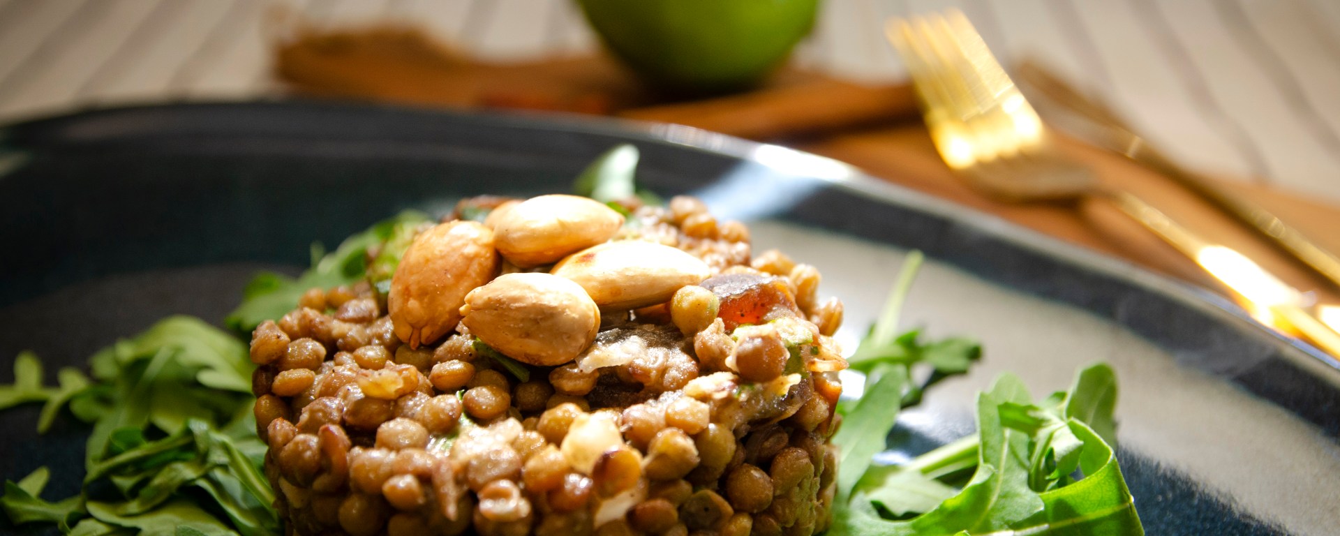 Mezclar las pasas, los dátiles, las cebolletas, el perejil picado, los jalapeños y las lentejas en una fuente grande. Añadir la salsa: 2 dientes de ajo triturados, ½ vaso de zumo de limón, 2 cucharadas de sal, 1 cucharada de pimienta negra molida, ¼ de pimienta de cayena, ½ cucharada de canela en polvo, 2 cucharadas de comino y ½taza de aceite.