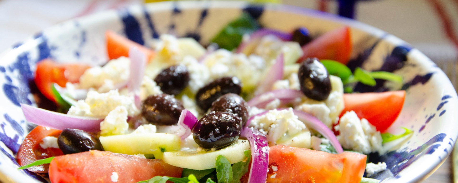 Aprovechando la temporada de verano y las cestas maravillosas de Vega del Tajuña me trae a casa, con los tomates más ricos que he comido en mi vida una cena muy recurrente estos días es esta ensalada griega, fresquita para estos calurosos días. No lleva muchos ingredientes pero si de calidad.